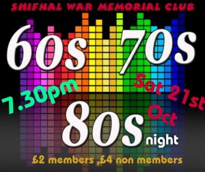 60s, 70s & 80s Night at The War Memorial Shifnal